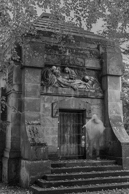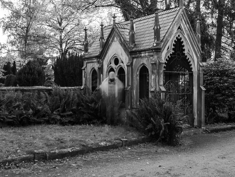 Die Grabstätten mit den Grabsteinen sind jedoch noch vorhanden. Durch bestimmte fotografische Techniken konnten wir sogar „Geister“ fotografieren.